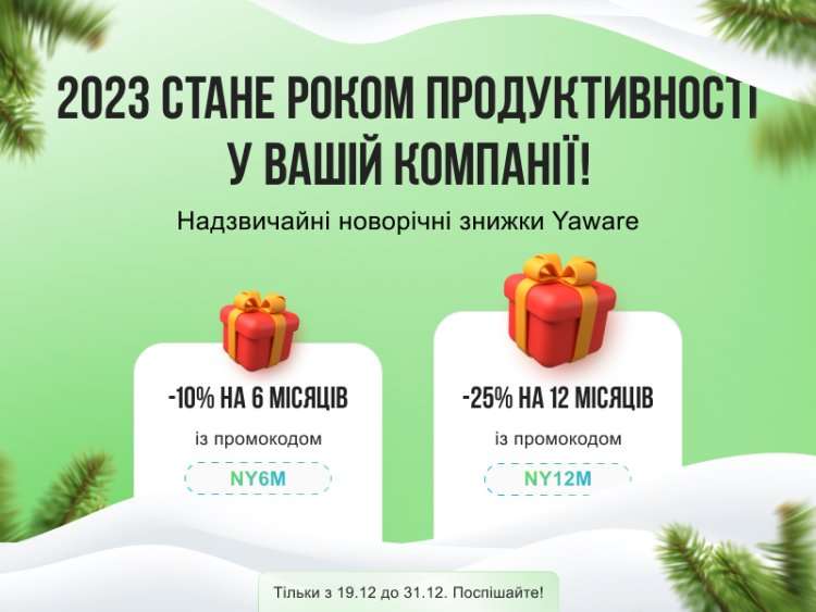 Встигніть оплатити сервіс Yaware з 19.12 до 31.12.2022 і отримайте надзвичайно вигідні тарифи: